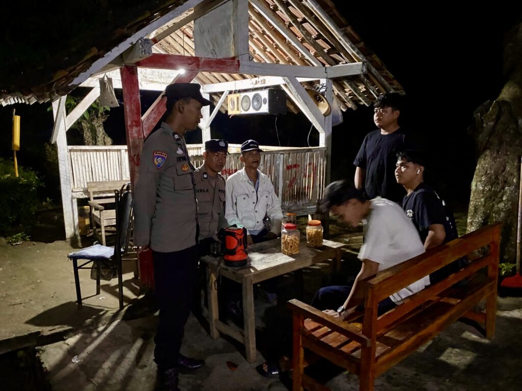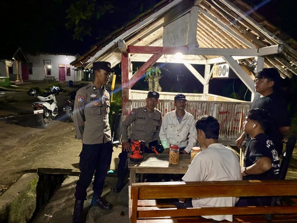 Dengan didampingi Kanit Binmas Polsek Trimurjo, Aiptu Dera Kapyaso, S.H., Briptu Irvan menyambangi Poskamling dan berdialog langsung dengan warga yang sedang melaksanakan ronda malam.