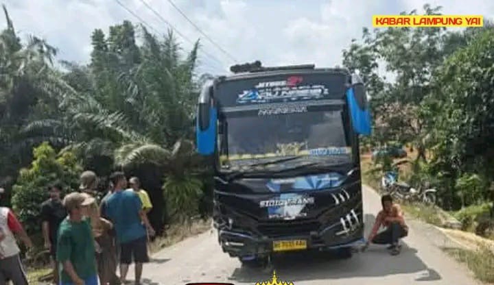 Lampung Tengah-Infokom Nusantara, Kecelakaan maut yang melibatkan satu unit bus pariwisata dan sepeda motor menghebohkan warga Kampung Bima Sakti, Kecamatan Negeri Besar, Kabupaten Way Kanan, Rabu (14/1/2026).