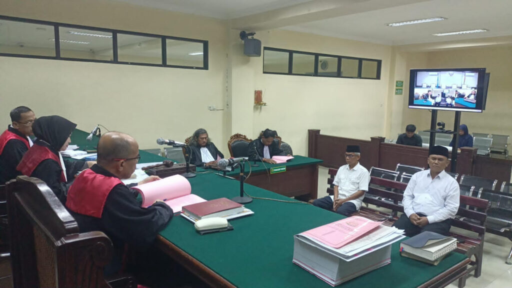 JOMBANG, MPIDTV.com – Jaksa Penuntut Umum (JPU) menuntut hukuman penjara 8 tahun 6 bulan terhadap mantan Direktur Perumda Perkebunan Panglungan Jombang, Tjahja Fadjari, serta 7 tahun 6 bulan penjara terhadap mantan Kepala Cabang Bank UMKM Jatim Jombang, Ponco Mardi Utomo, dalam perkara korupsi dana bergulir senilai Rp1,5 miliar.